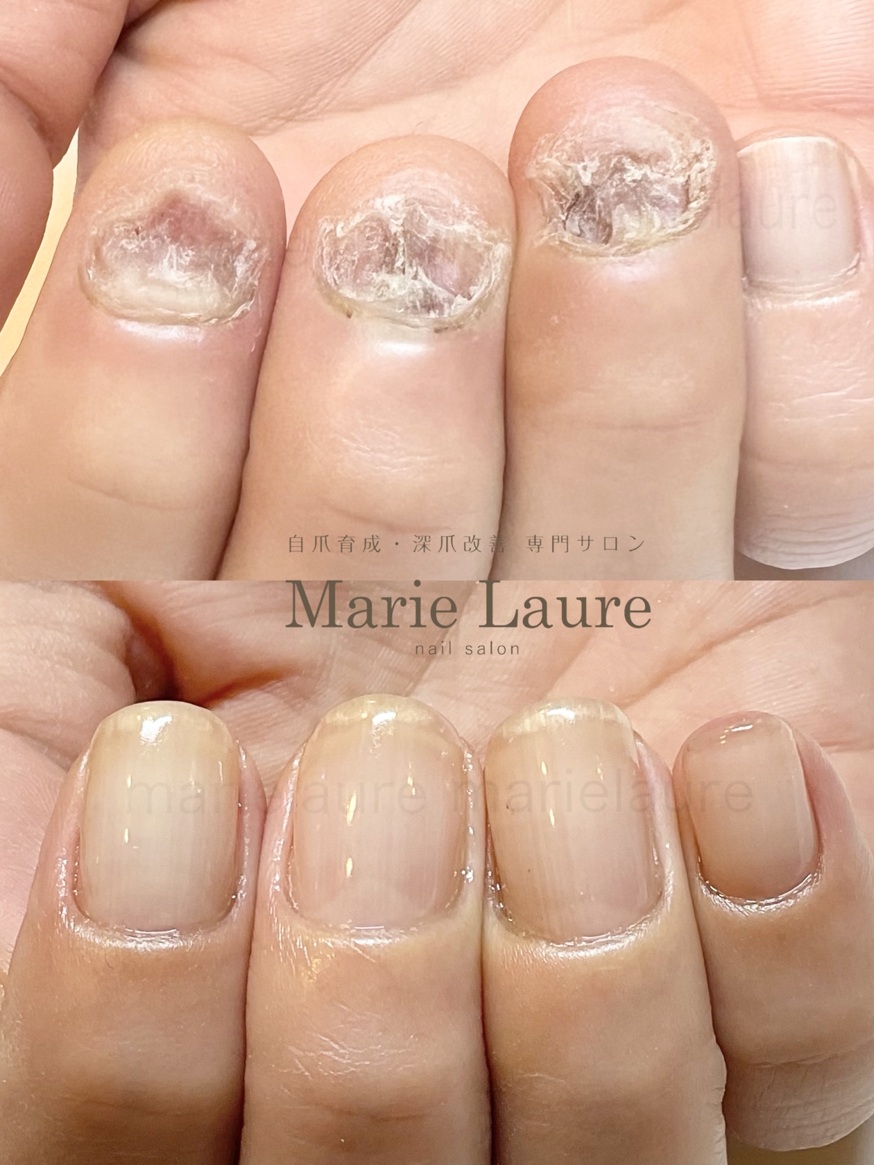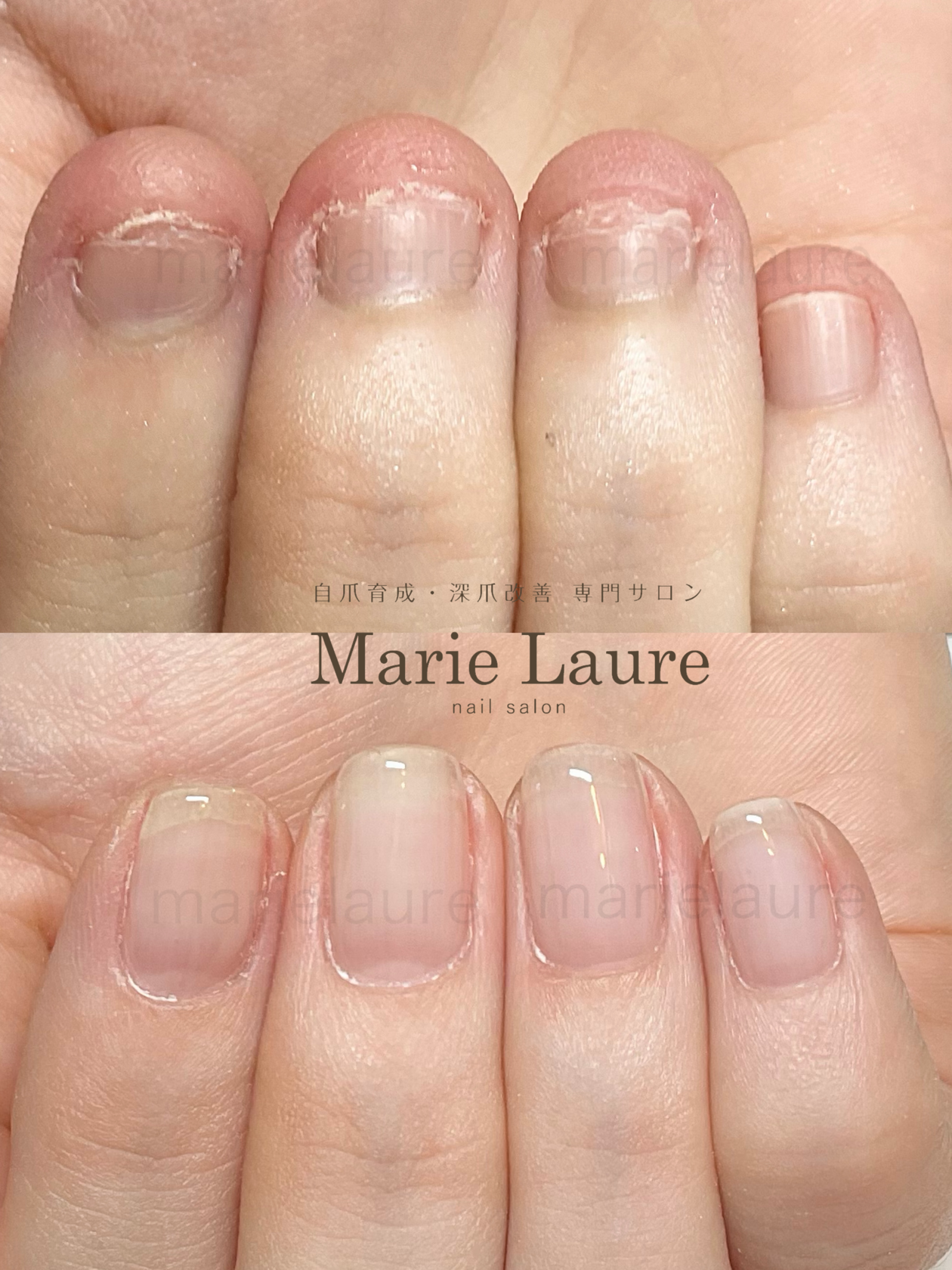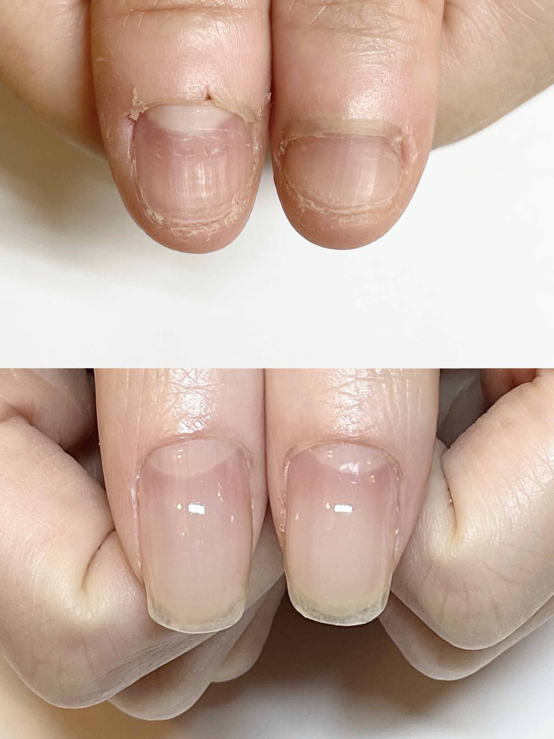 今回もキレイに仕上げていただき、ありがとうございました!最初の頃の時と比べ、ピンク部分も伸びており、効果を改めて実感しました。これからも保湿など頑張りながら、続けていきたいと思います。